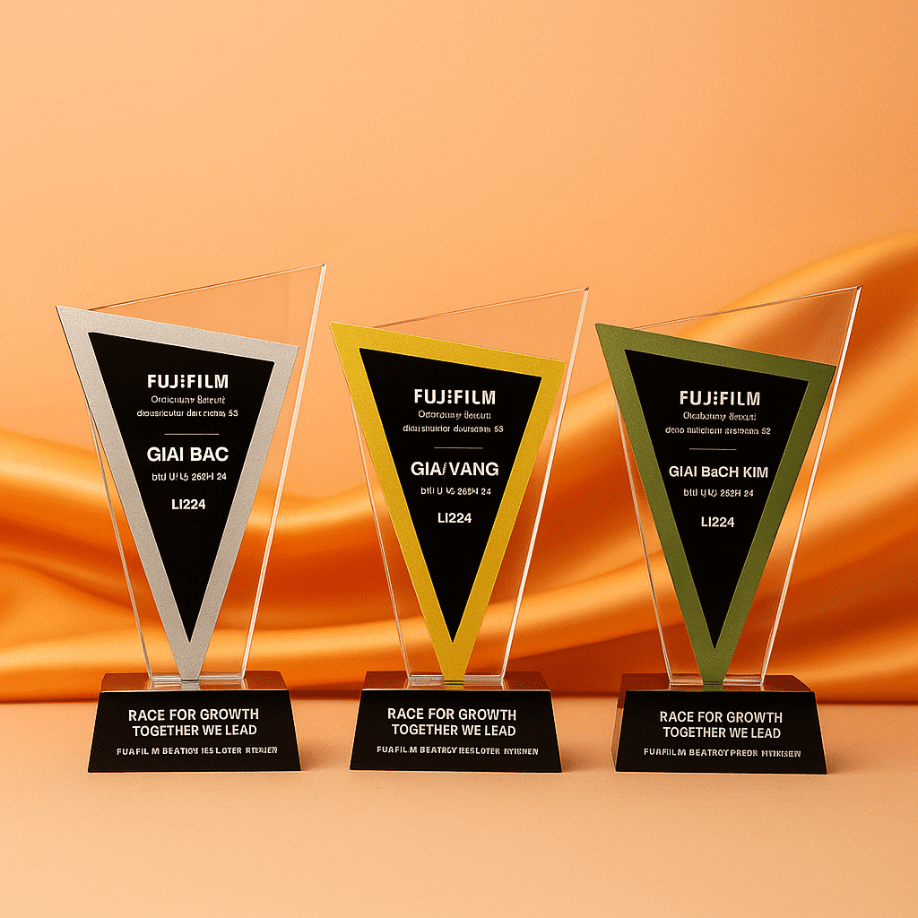 Chất liệu cao cấp không chỉ đảm bảo độ bền đẹp theo thời gian mà còn thể hiện sự tinh tế trong từng chi tiết, xứng đáng là lựa chọn cho những giải thưởng tầm cỡ.